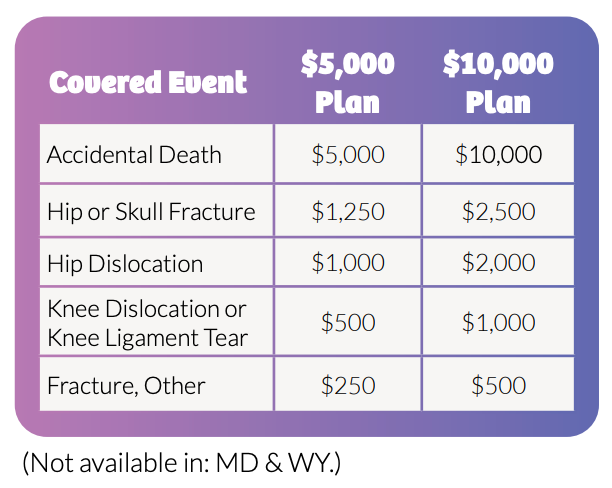 You will receive benefits of $100 up to $450 a day, regardless of the base daily benefit amount selected, should you be confined to a hospital due to an accident or sickness. You can choose a 3-day, 6-day or 10-day benefit period which will restore after 60 days of no hospital confinement. Full benefits are paid for hospital stays as long as confinement was at least 24 hours. (For Ages 75 and above, $100 to $300 a day available, for a 3-day or 6-day benefit period.)